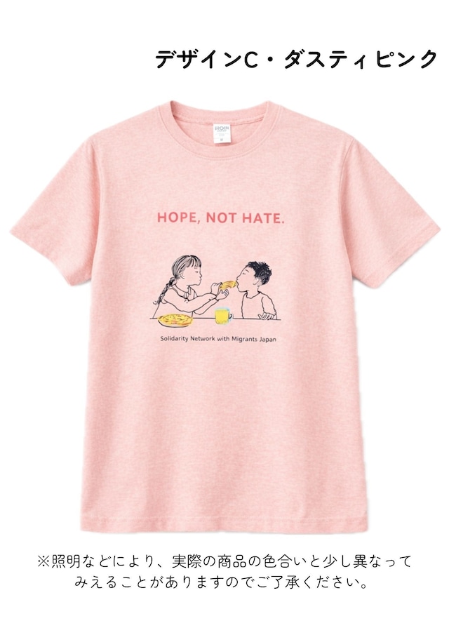 移住連チャリティTシャツ2026販売開始! ヘイトにNO!全国キャンペーンの一環で、チャリティTシャツを作成しました。 移住連チャリティカレンダー2026の色鮮やかなお茶やさまざまな人びとのイラストがTシャツに! Tシャツの売り上げは、移民・難民の生活をサポートする活動に大切に使わせていただきます。 文筆家・イラストレーターで、「難民・移民フェス」実行委員でもある金井真紀さんからイラストを提供いただきました。日本に暮らすさまざまなルーツの人びとの日常のひとコマが、やさしいタッチで描かれています。身につけることで、隣人とともに生きる社会をそっと応援できる一枚です。 < 移住連チャリティTシャツ2026のおすすめポイント> ・ 金井真紀さん作・世界のさまざまな地域から来たお茶・コーヒーや、さまざまなルーツをもつ人びとのスケッチ! ・ このTシャツの収益は、移民・難民、移民ルーツの人びとの生活支援に使われます! ・ 大切な人へのプレゼントにも最適です! Tシャツのサイズ・着用イメージにつきましては、画像をご参照ください。 ※照明などにより、実際の商品の色合いと少し異なってみえることがありますのでご了承ください。 【訂正とお詫び】 在庫到着後、デザインAとデザインBにスペルミスが発覚いたしました。できる限り在庫を活かした形で販売ができないか検討し、手作業で修正を施したうえで販売する決断をいたしました。修正箇所の詳細は、画像でご説明しておりますので、ご購入前に必ずご参照いただけますと幸いです。 今後はこのようなことがないように細心の注意を払って確認いたします。ご迷惑をおかけしますことを深くお詫び申し上げます。 【発送スケジュール】 ・3月中旬から順次発送予定。 ※送料:1枚につき、クリックポスト(185円)1通で配送。複数枚ご購入の場合、規定サイズの関係で複数個口で発送となります。そのため、複数口でお手元に届いてしまいますが、ご理解いただけますと幸いです。