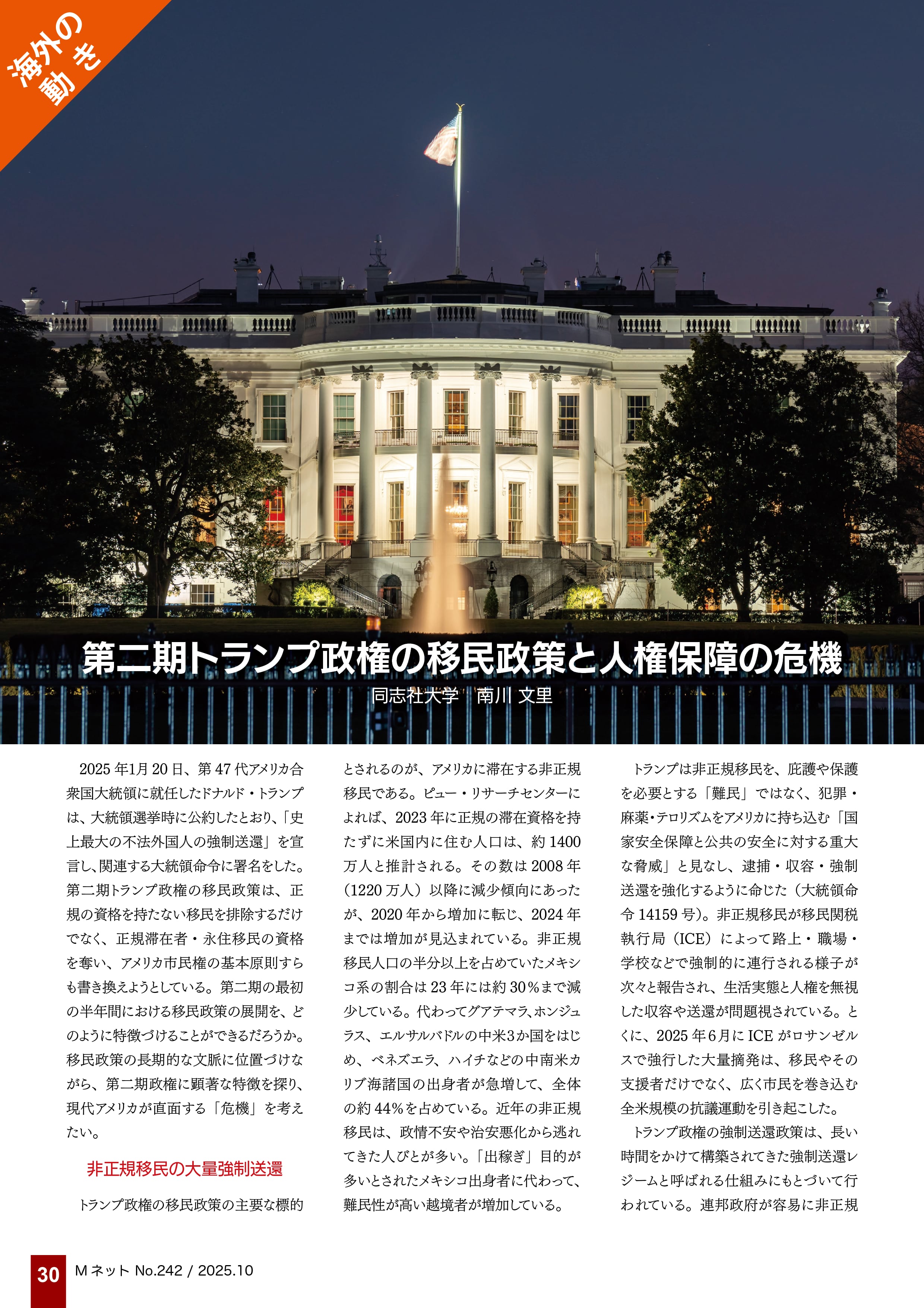 30 【国外の動き】第二期トランプ政権の移民政策と人権保障の危機 南川 文里