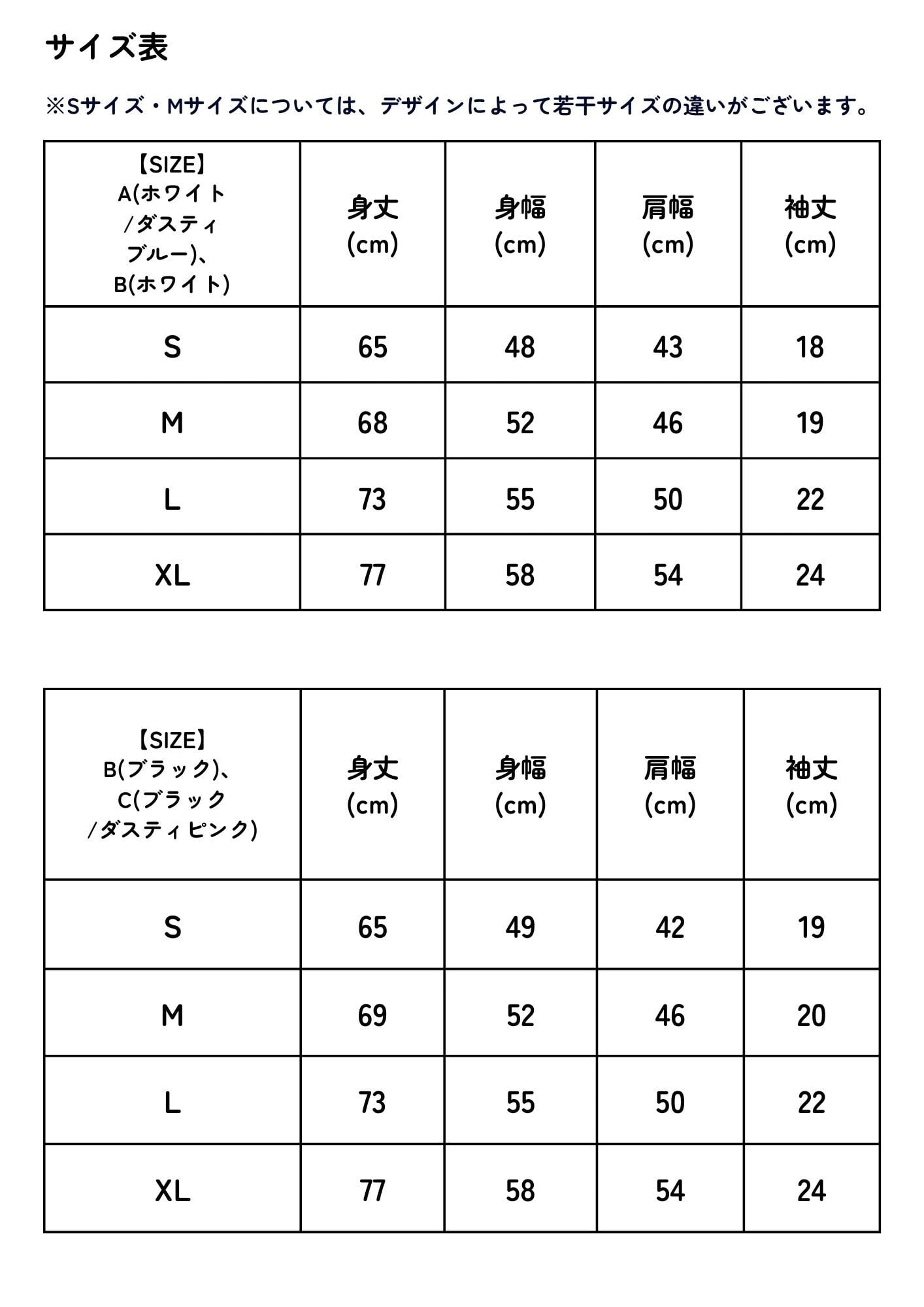 Tシャツのサイズ・着用イメージにつきましては、画像をご参照ください。